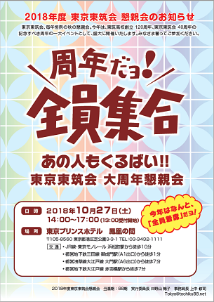 今年度の懇親会は、東筑創立120周年、 東京東筑会40周年、 そして平成30年 に行われる東京東筑会の懇親会。何かとキリがよく、何かとめでたいタイミングです。