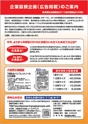 ⇒現在申込は終了いたしました。多数ご協賛いただき誠にありがとうございました。
